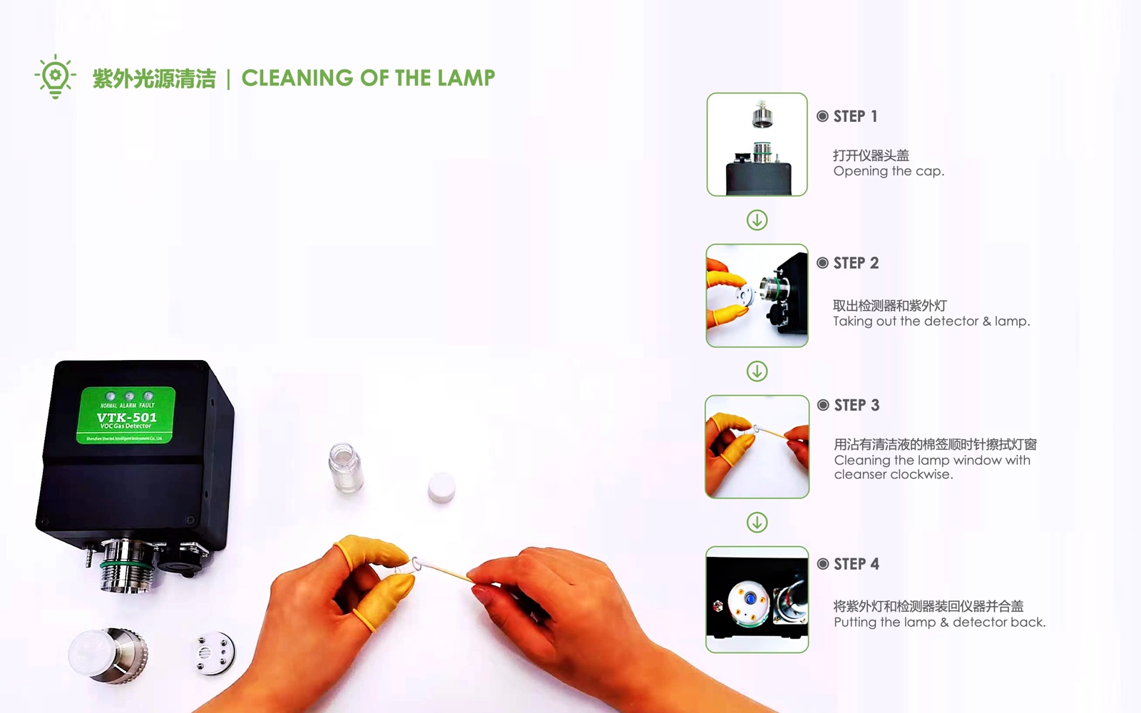 看圖學習如何清潔VTK-501的紫外光源